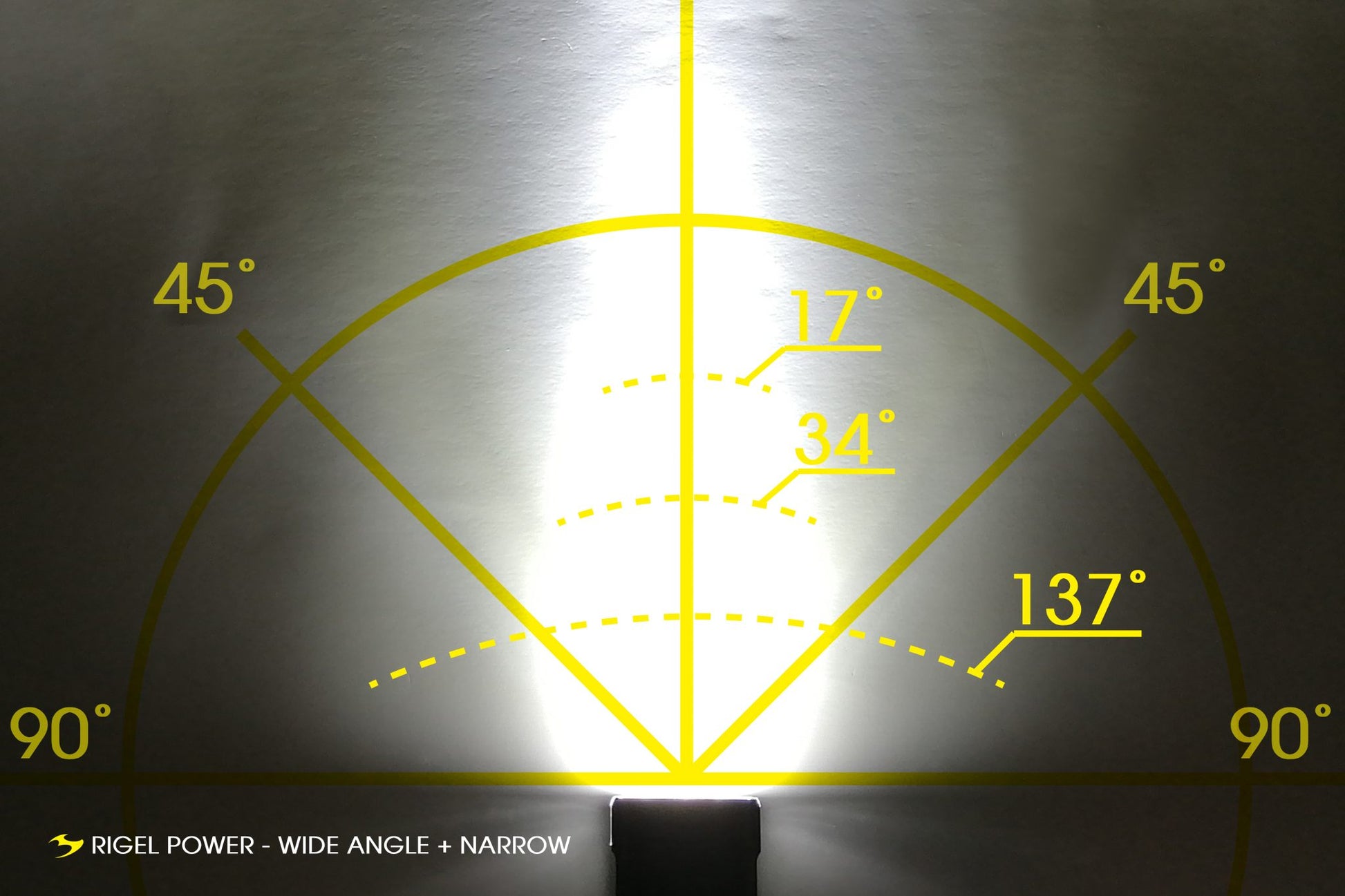 - Total angel: 137° Spot angel: 17° Flood: 34°